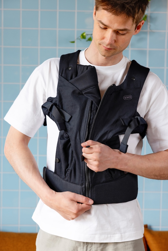 Voksi Huddle – uzvelc kā jaku, ieliec bērnu, aizver rāvējslēdzi, gatavs!